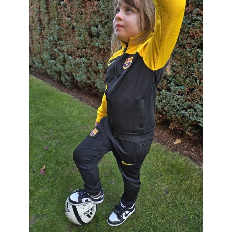 Dětská fotbalová tepláková souprava Barcelona bude věrným společníkem Vašich dětí v kterékoliv situaci. Ať už trénují na hřišti, sedí doma na gauči nebo jsou na cestě do tělocvičny. Souprava se skládá z tepláků a bundy. Je pružná, nemačkavá, příjemná a dobře se o ni pečuje. Postranní kapsy na bundě i u tepláků nabízí dost místa na potřebné předměty. Vaše děti budou spokojené!